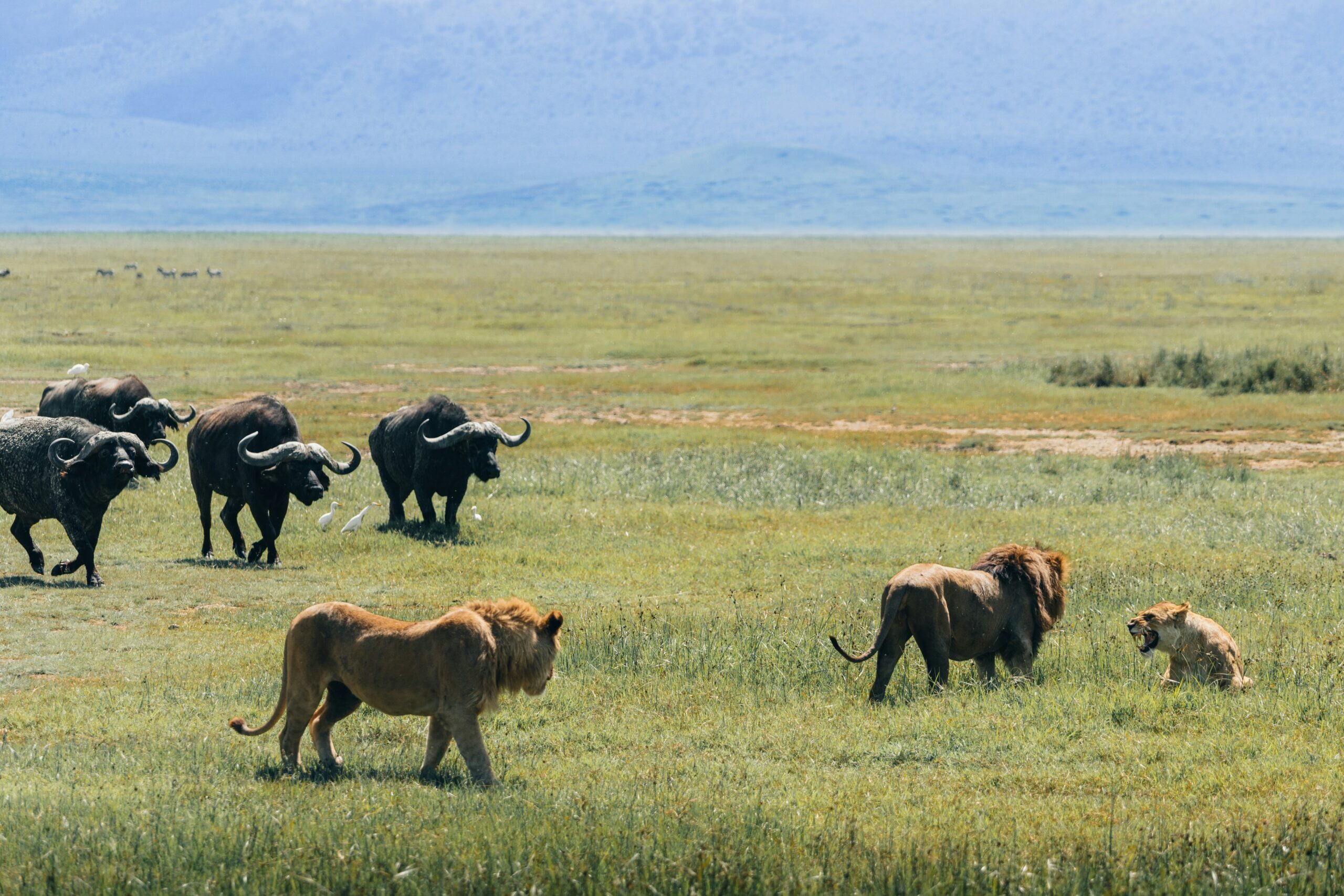 Start the day with an early-morning game drive and a sunrise over the Serengeti before breakfast. Continue with a final game drive as you exit the park, then journey through the Ngorongoro Crater Conservation Area, home to diverse wildlife, including rare black rhinos and giant-tusked elephants. Arrive by late afternoon. Dinner and overnight at Ngorongoro Lions Paw